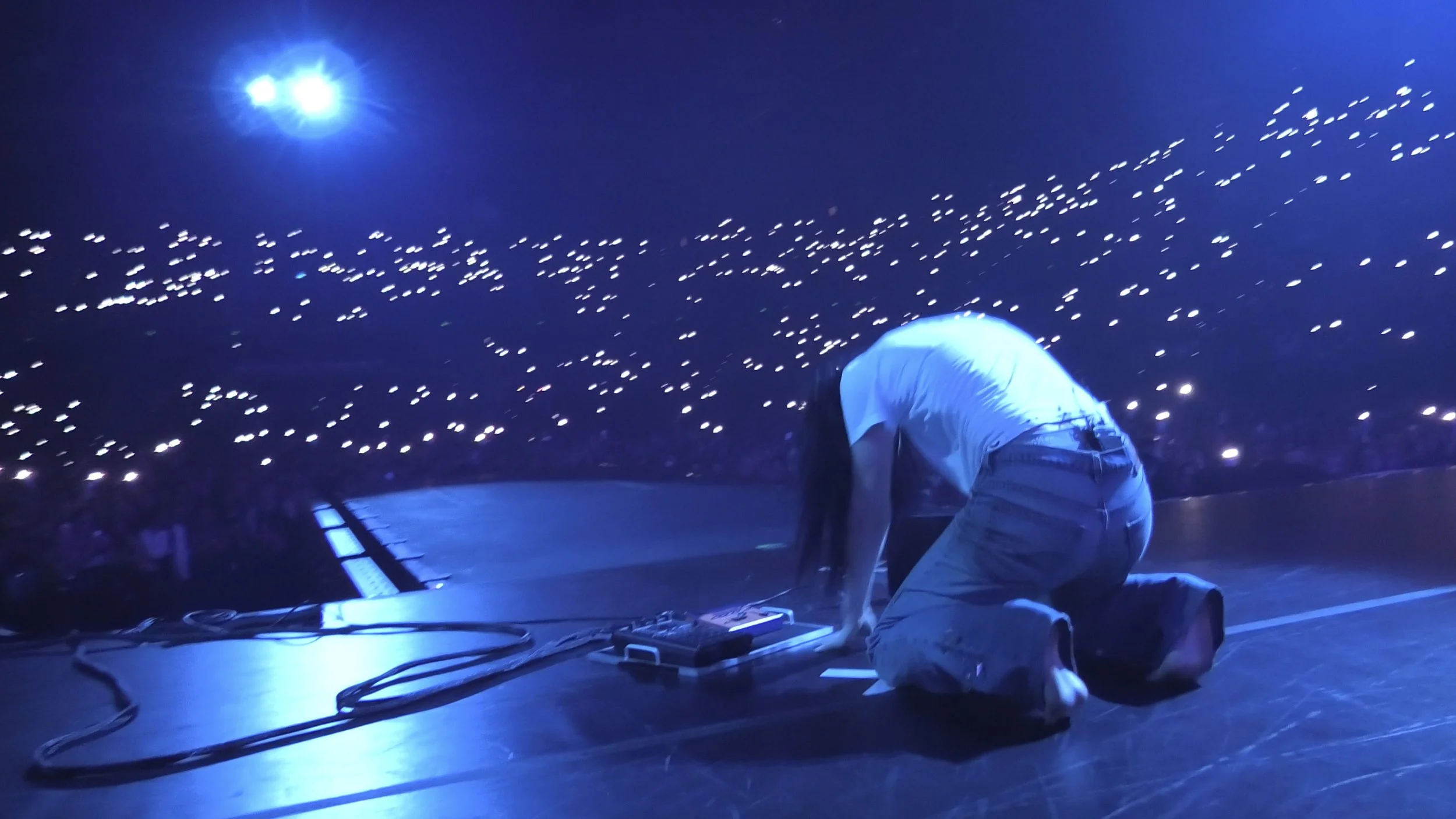 Another track from Pure Heroine follows with Buzzcut Season. The production is again amazing here. The live visuals on the screen behind her are divided into different shapes, cutting perfectly between the many cameras on stage. It feels like watching a concert film or music video directed in real time, especially with the onstage props like the turbine fan that Lorde is now singing behind.